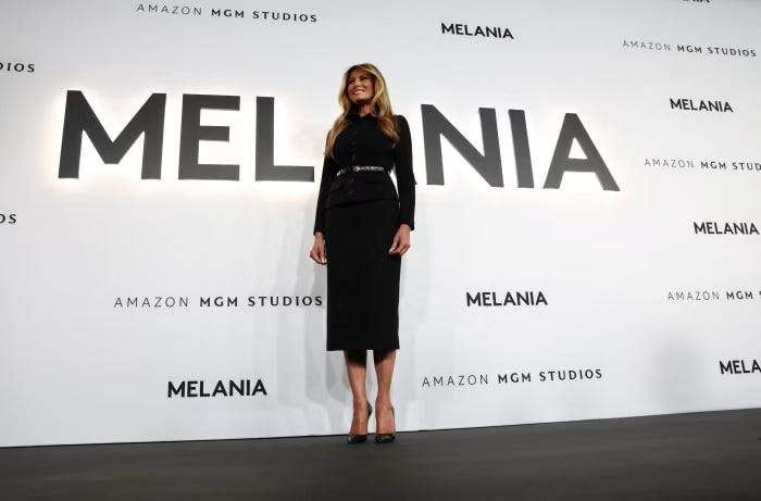 Analyzing Melania is a difficult exercise—not because it’s a complicated film, but because it shifts the playing field to the other side of the spectrum. “Writing this piece is a losing game. In order to criticize the Free Press’ failures, I have to do something they refuse to do with so many of the subjects they write about: I have to be interested in them,” Rayne Fisher-Quann recently wrote in an excellent piece on The Free Press’s house style. What’s the point of going to see or read something we know we’ll hate? Yet, I believe that reading and understanding conservatives is important, a practice in studying media literacy. You can’t live on a diet of liberal news outlets, Democracy Now, and anarchist zines. Or perhaps you can, but it seems an omission to completely toss the propaganda of MAGA aside.